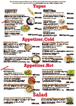 前菜は380円〜あり480円のタパス料理もバラエティ豊富なメニューが集い、