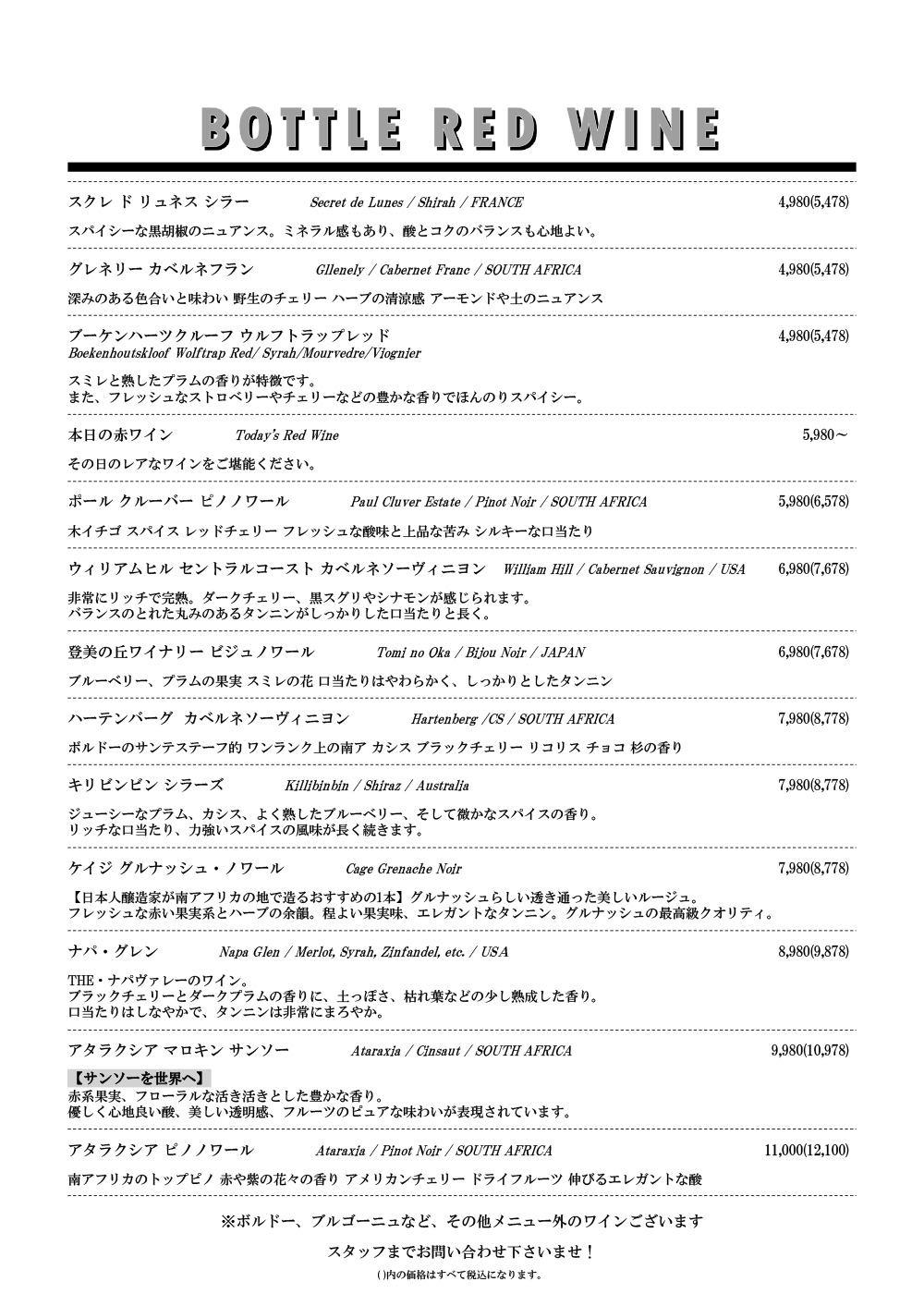 これから確実にブームとなる南アフリカのワインを中心に楽しめます