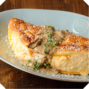 有名情報メディア『RETRIP』で極上オムレツが美味しいお店7選に選ばれたフワフワのスフレオムレツ、
