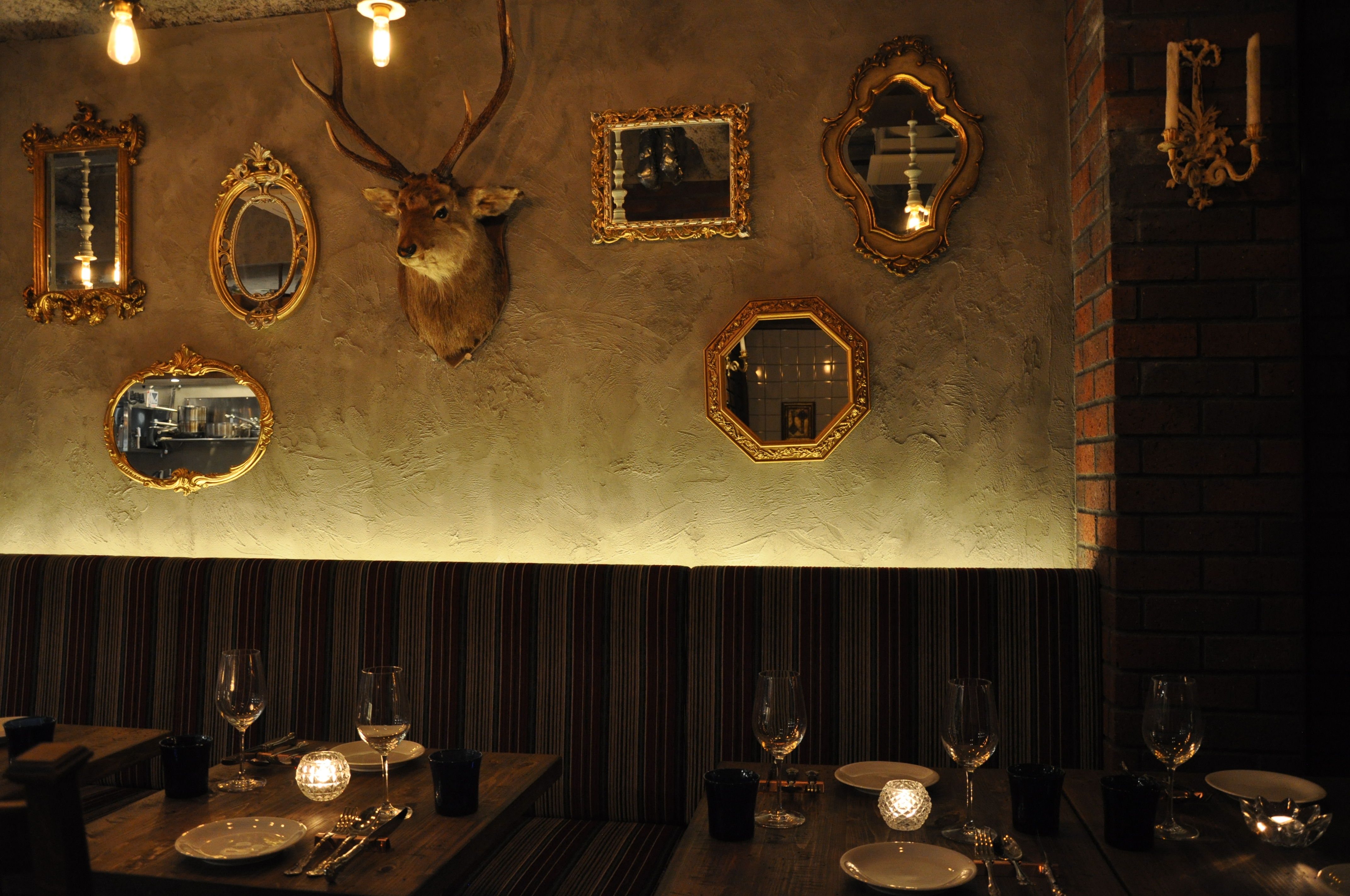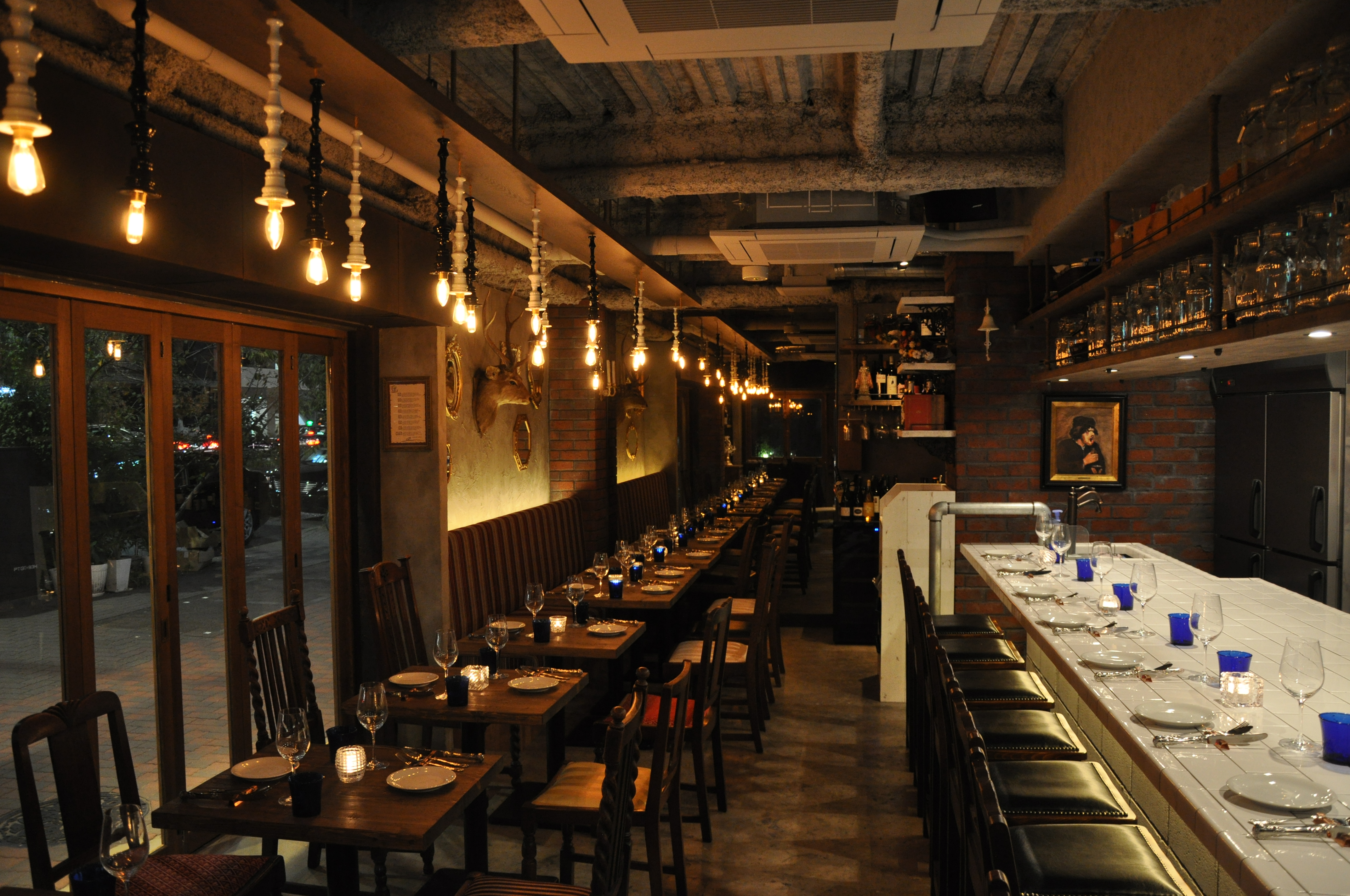 店内は、「アンティーク好きのフランス人オーナーがニューヨークに創ったビストロ」と言うコンセプトで創られており、