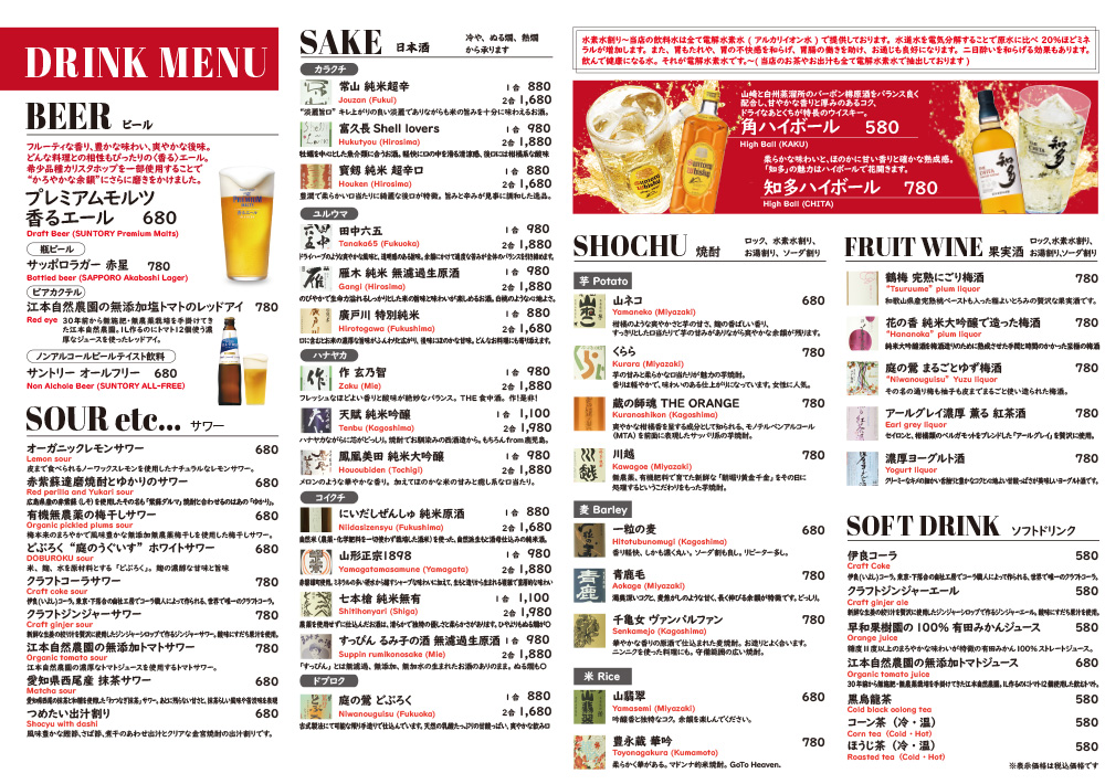 や焼酎、自然派ワインとのマリアージュを楽しめます