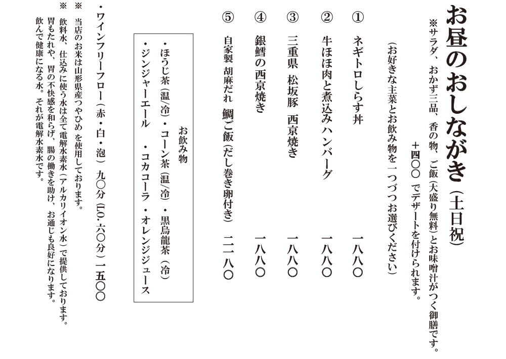 新しい試みとして水素水を調理に取り入れたり、お茶出しやお酒の割り水としても水素水を使用しており、身体のコンディションも整います